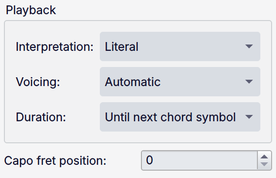 These options affect chord symbols and Nashville numbers only (not Roman numeral analysis, which is not realized for playback).