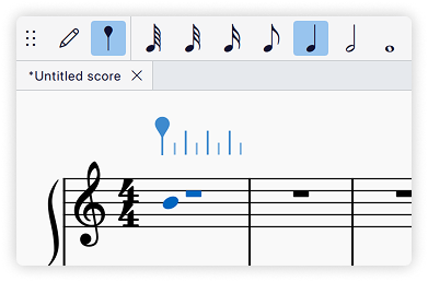 Survoler une portée et cliquer permet d'insérer une note à l'emplacement du curseur. Consultez la page Saisir des notes et des silences pour plus de détails.