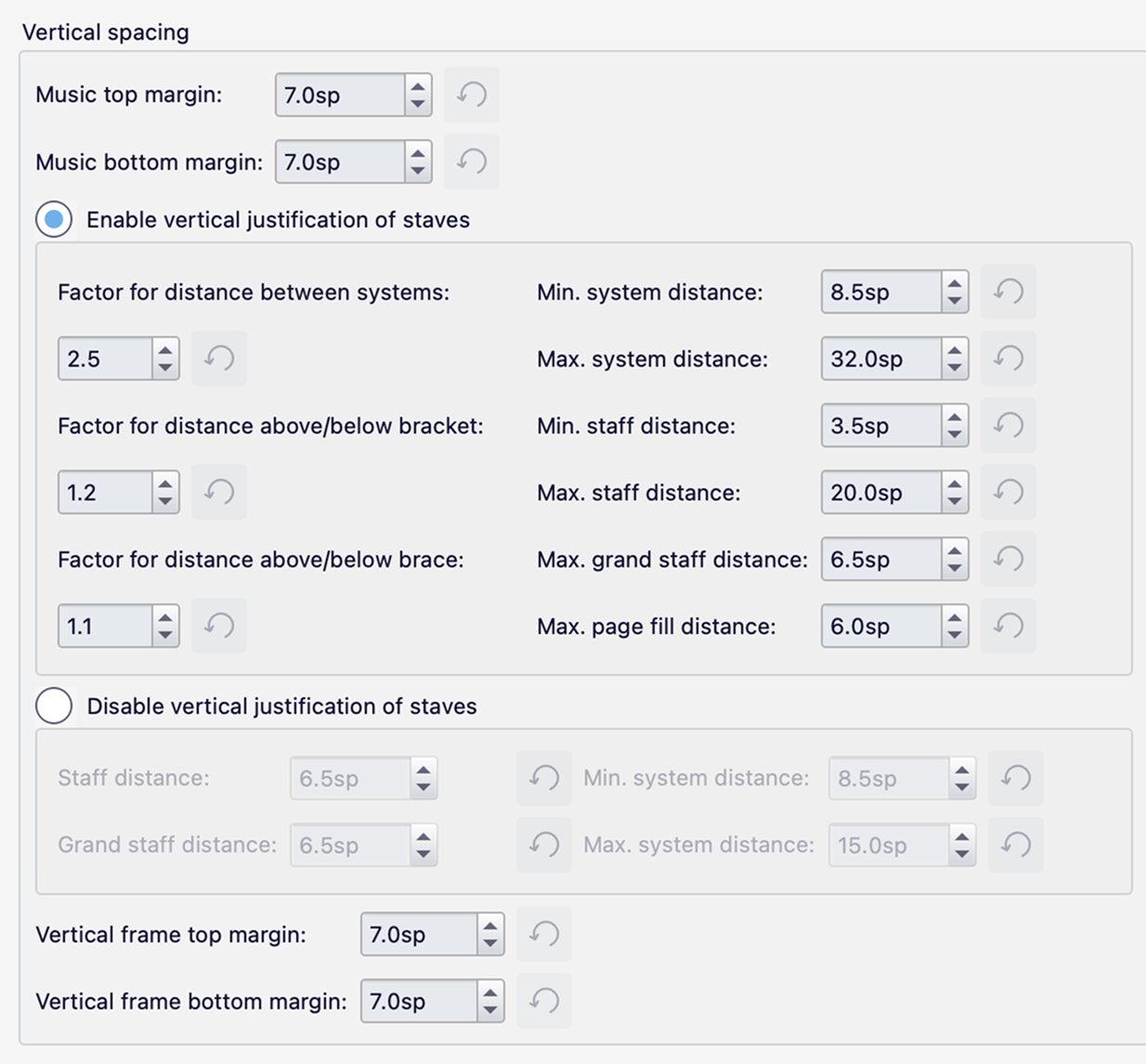 The remaining settings determine how MuseScore Studio distributes staves across the vertical space on the page.