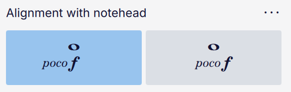 * **Alignment with notehead**: how to align a dynamics item which has additional text in it; see [Text as part of a dynamics item](#text-as-part-of-a-dynamics-item) for details