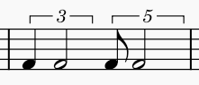 * **Extend bracket to end of duration:** If unchecked, the bracket will end over the last note or rest inside the tuplet. If checked, the right end of the bracket will be extended to the position where the final division of the tuplet would appear, even if there is no explicit note or rest there. For example: